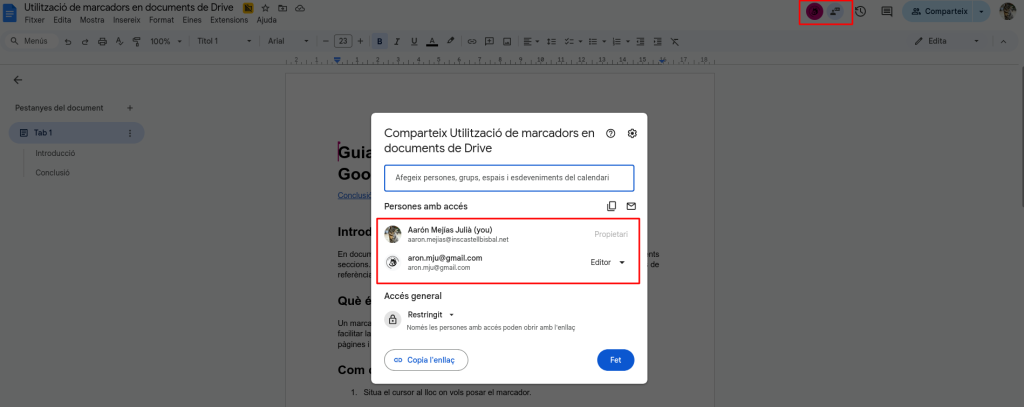 - Compartició de recursos en temps real, amb opció de permissos per persona