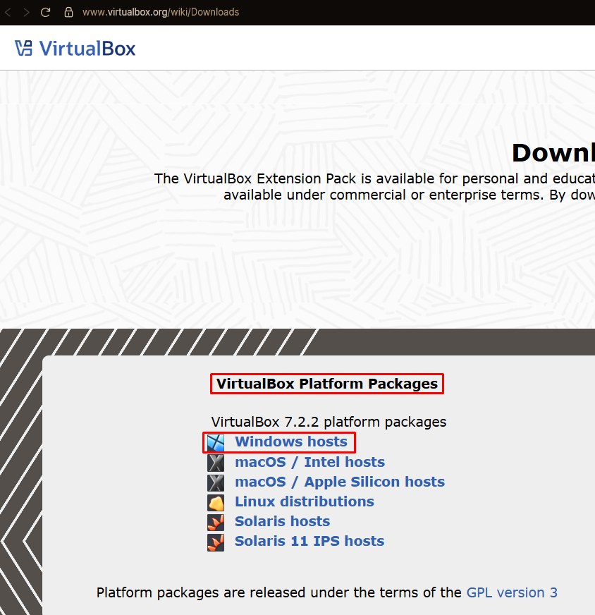 1- Per començar anirem a la pàgina oficial de descarrega de Virtual Box (https://www.virtualbox.org/wiki/Downloads) i a l’apartat “VirtualBox Platform Packages” seleccionarem la versió del nostre SO per descarregar l’executable (.exe) de VirtualBox: