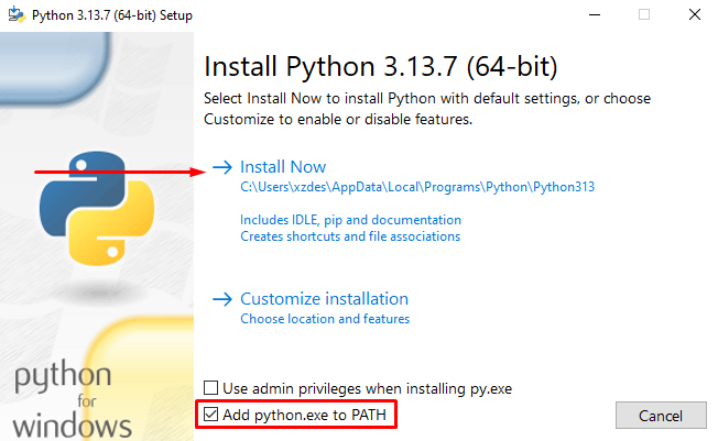 2- A l’iniciar l’executable (.exe) serà important marcar l’opció “Add python.exe to PATH” abans d’instal·lar: