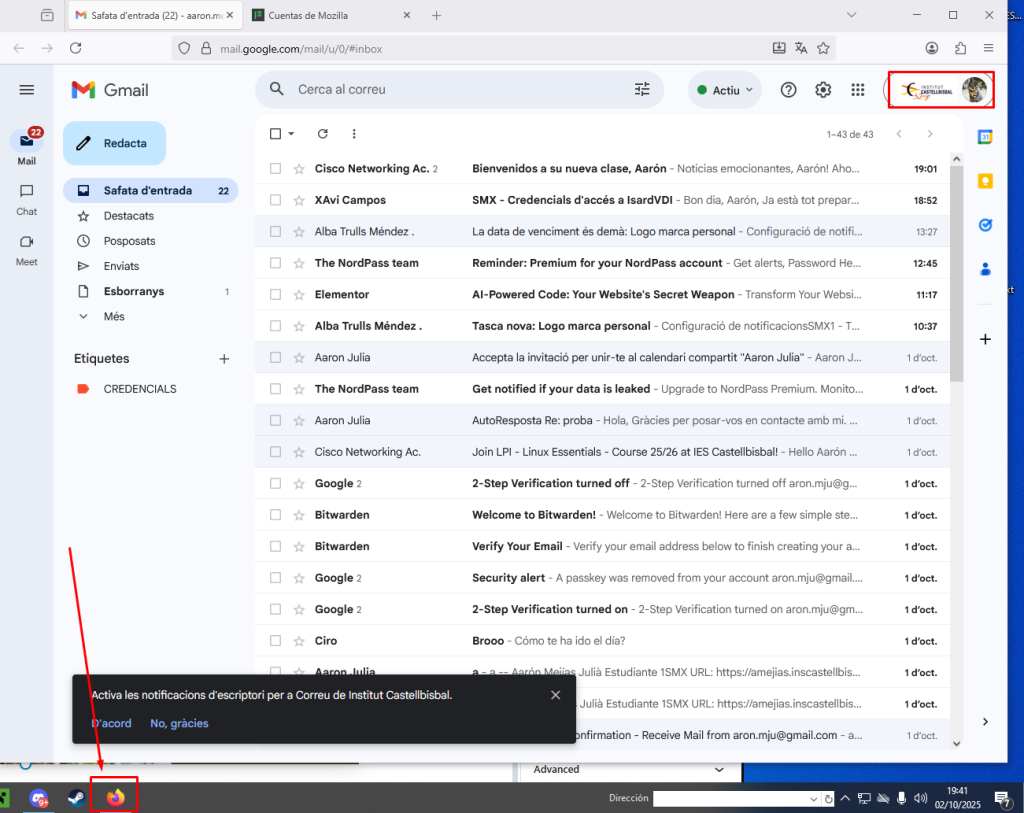 2- Un cop obrim l’executable, Firefox s’instal·larà automàticament (a Windows) i podrem anclar-ho a la barra de comandes, ja podrem navegar a Firefox i inicar sessió del nostre compte corporatiu o profesional: