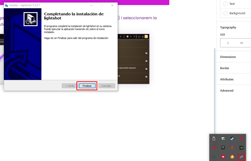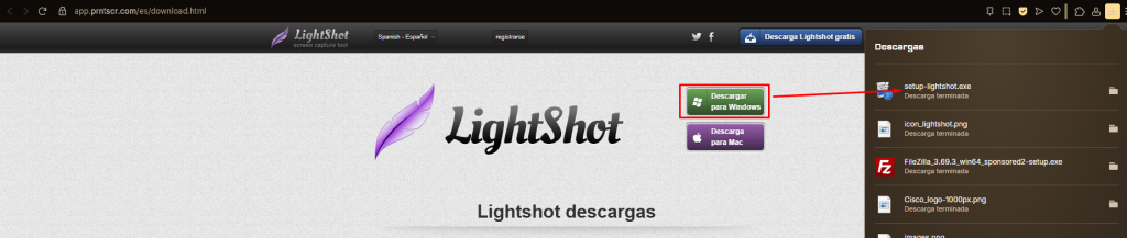 1- Anirem a la pàgina oficial de descarga de LightShot (https://app.prntscr.com/es/download.html) i seleccionarem la versió compatible amb el nostre SO per obtenir l’executable: