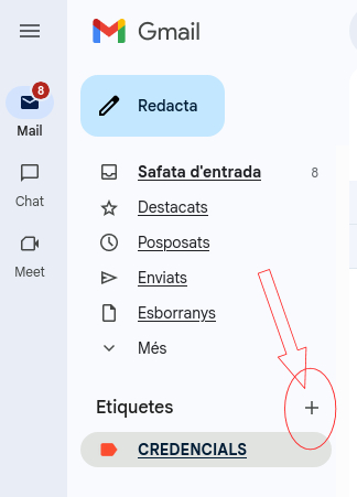 1- Hauràs d’anar al teu compte de Gmail i cercar a la part esquerra de la pàgina un apartat anomenat “Etiquetes“, al costat trobarás el signe “+“, clicka en l’icona: